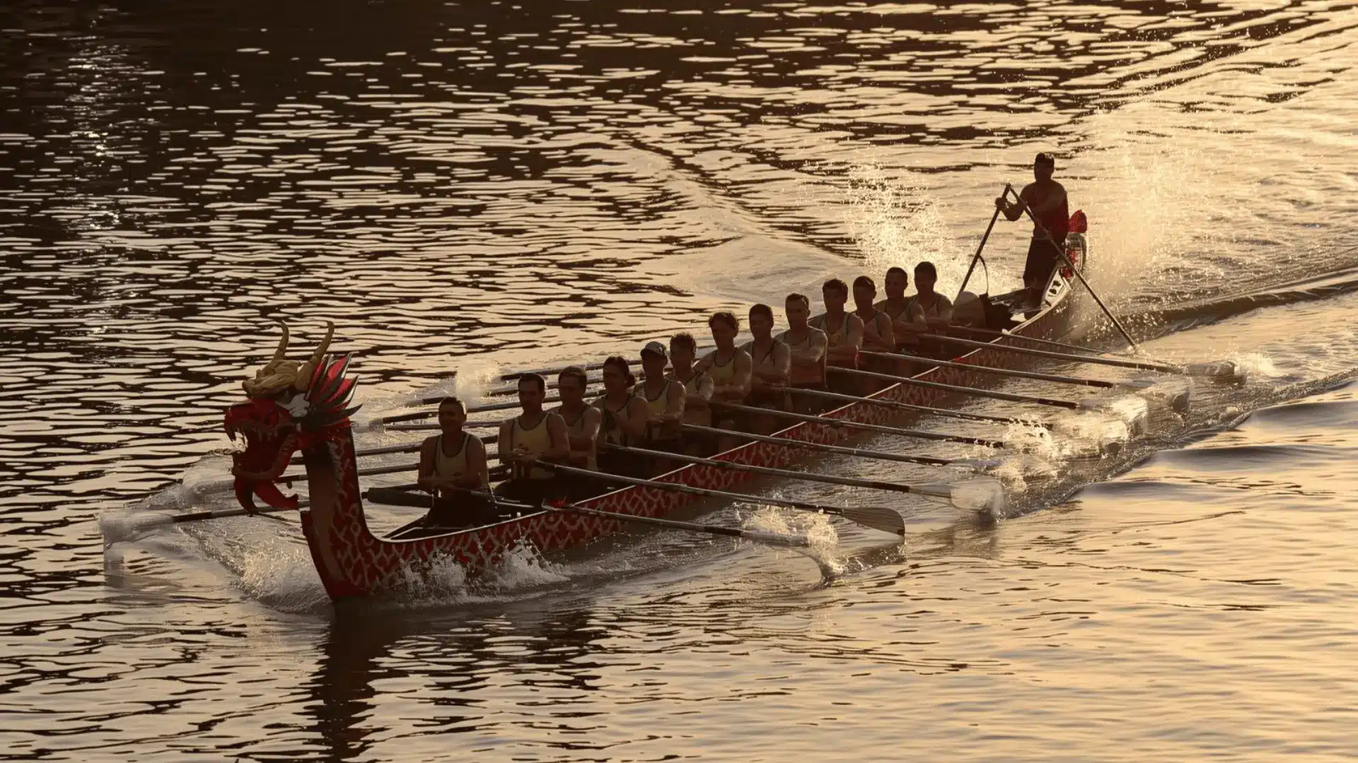Twenty paddlers, one drummer, and one steerer work as a single unit. Their goal is simple: move the boat faster through perfect timing and teamwork.